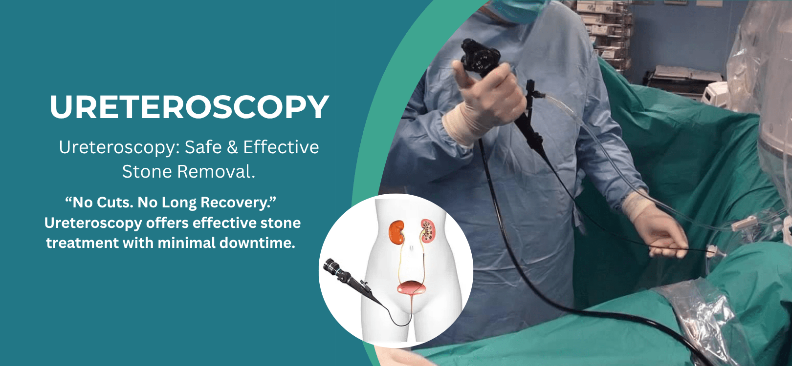 Ureteroscopy is a safe and effective minimally invasive procedure used to diagnose and treat conditions of the ureter and kidneys, most commonly kidney stones and ureteric stones. At Sarvodya Hospital, under Dr. Rajesh Aggarwal, a highly experienced urologist, performs advanced flexible and rigid ureteroscopy (URS) using the latest endoscopic equipment.